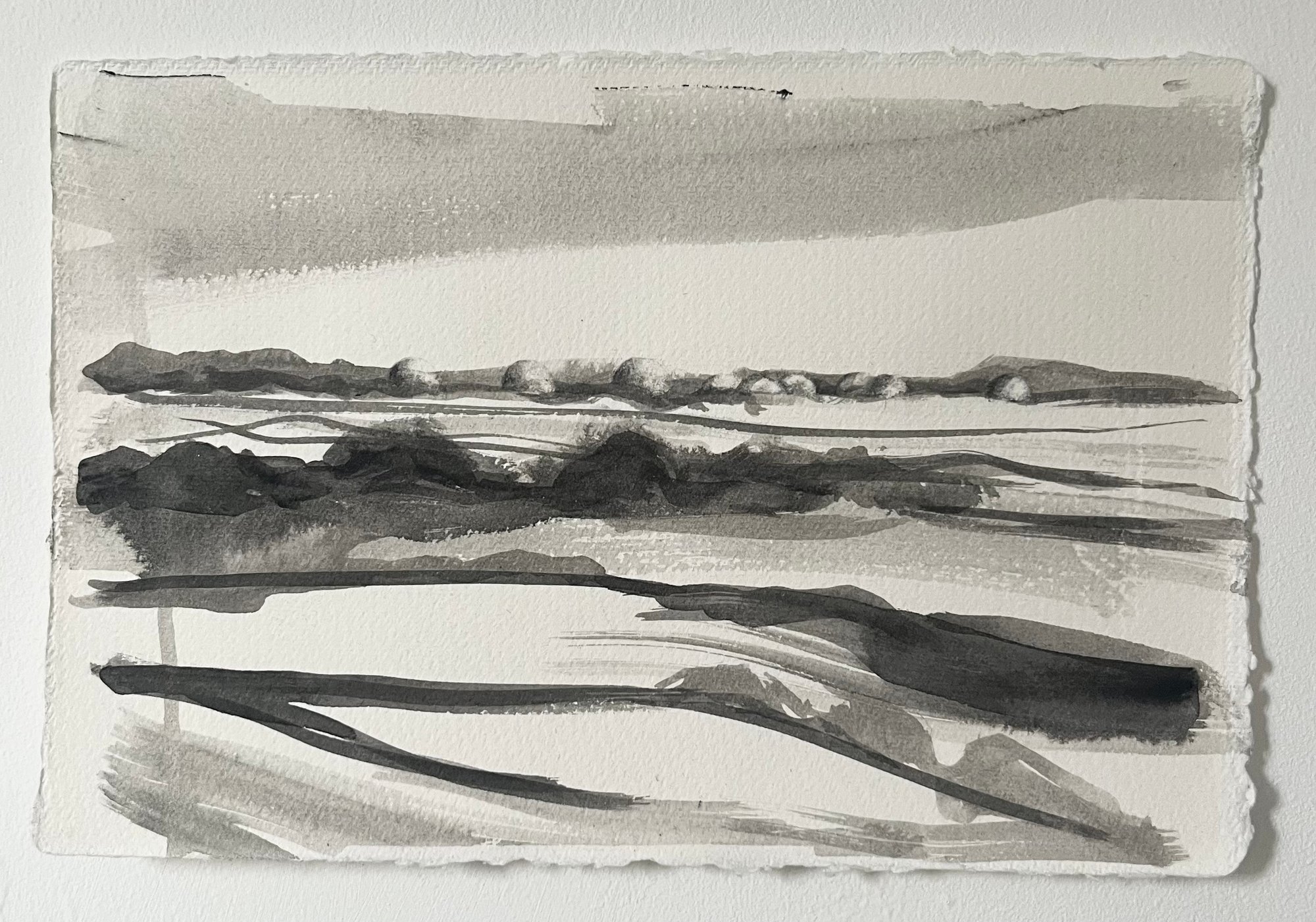 Radomes in the Snow, Ink on watercolour paper, 15cm x 10cm. FREE UK SHIPPING